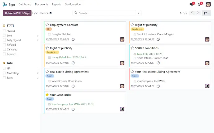 Con Odoo, solo tienes que llenar un documento una sola vez. El sistema hace el resto, agilizando tu proceso de firma y reduciendo errores.