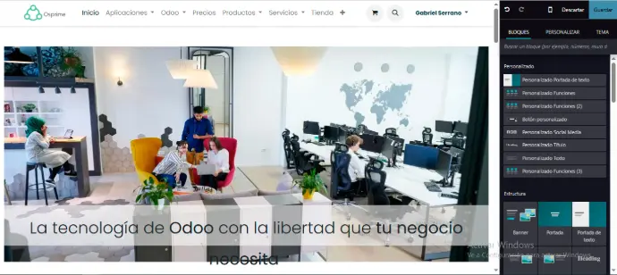 Olvida la complejidad y los altos costos del diseño web tradicional. Con el constructor de sitios web de Odoo, tienes el poder de crear, gestionar y hacer crecer tu presencia online desde una plataforma visual e increíblemente intuitiva. Lanza tu proyecto en minutos, no en meses, gracias a nuestra tecnología de inteligencia artificial y a un sistema de edición que te da control creativo total.